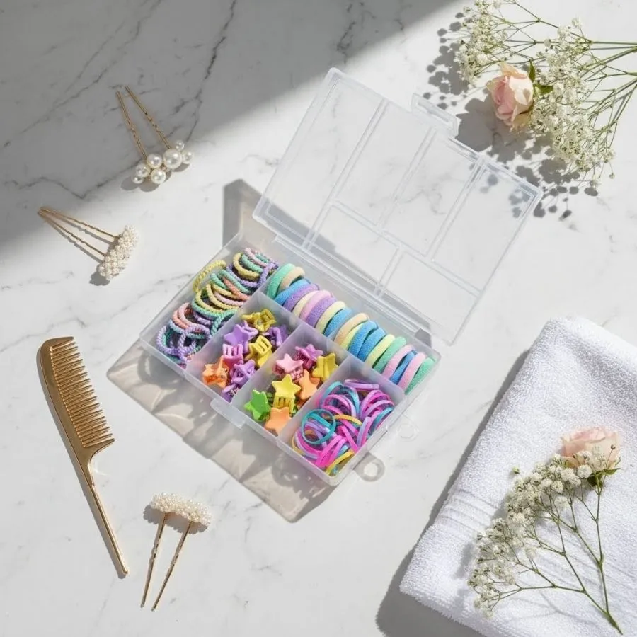 Be the first to review “ZaiQuin 120-Piece Kids Hair Accessory Set – Pastel Candy Colored Mini Clips, Rubber Bands, & Fabric Ties – Ultimate Hair Styling Kit with Travel Organizer Box for Girls” Cancel reply
