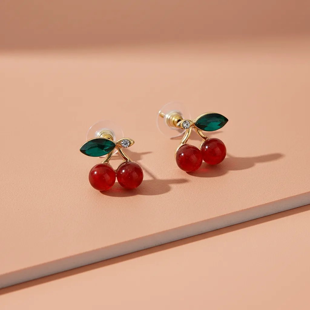 🍒 Minimalist Design: Cherry Stud Earrings – Ultra-small and dainty cherry silhouette for a subtle, cute statement.