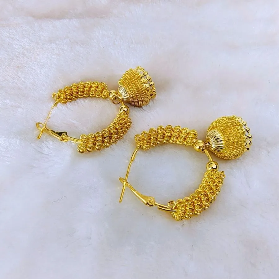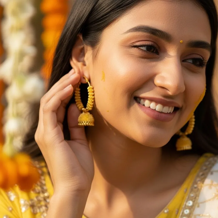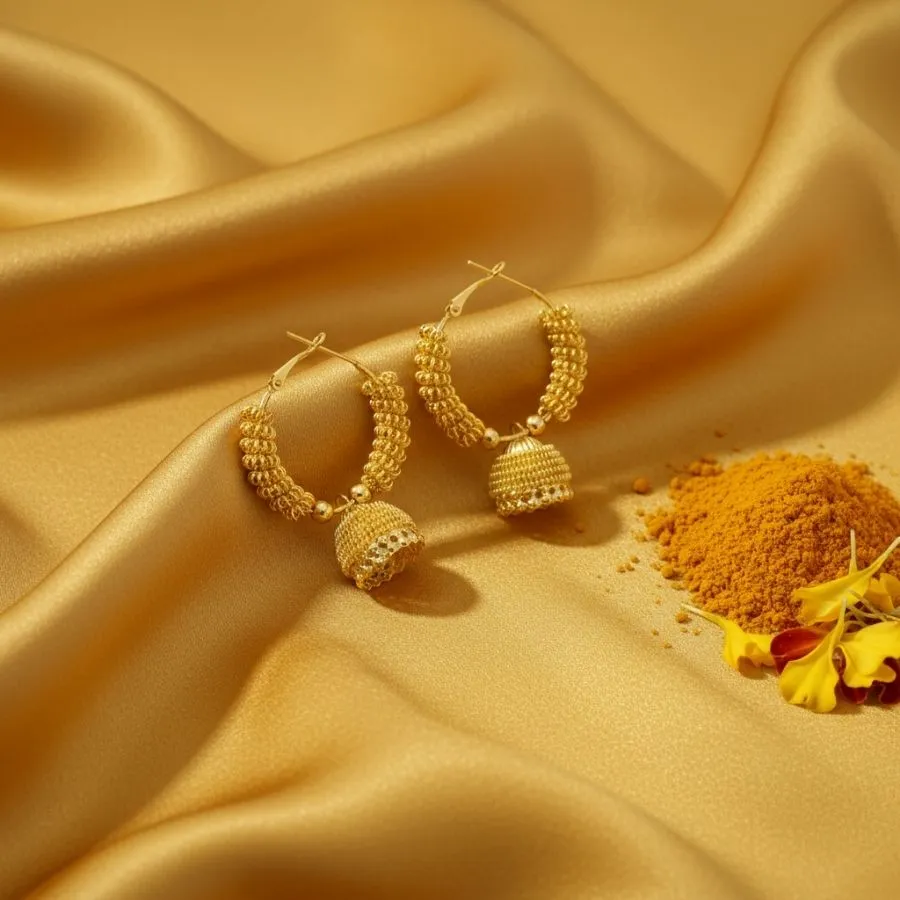 Be the first to review “ZaiQuin “Haldi Glow” Golden Hoop Jhumka Earrings – Traditional Matte Gold Plated Jhumki for Wedding Ceremonies & Festive Wear | Haldi Ceremony Jewelry” Cancel reply